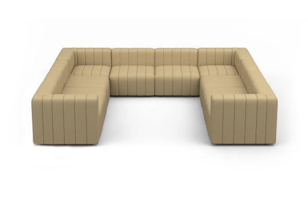 Modularité à souhait, Housse déhoussable et lavable grâce à la technique du velcro , Salon proposé dans 3 types de revêtement: Toile 100% Olefin, Easy Clean aux propriétés Eco-Friendly certifiée Reach & Oekotex / Velours côtelé et bouclette anti-taches, Assemblage des modules avec des pinces métalliques intégrées