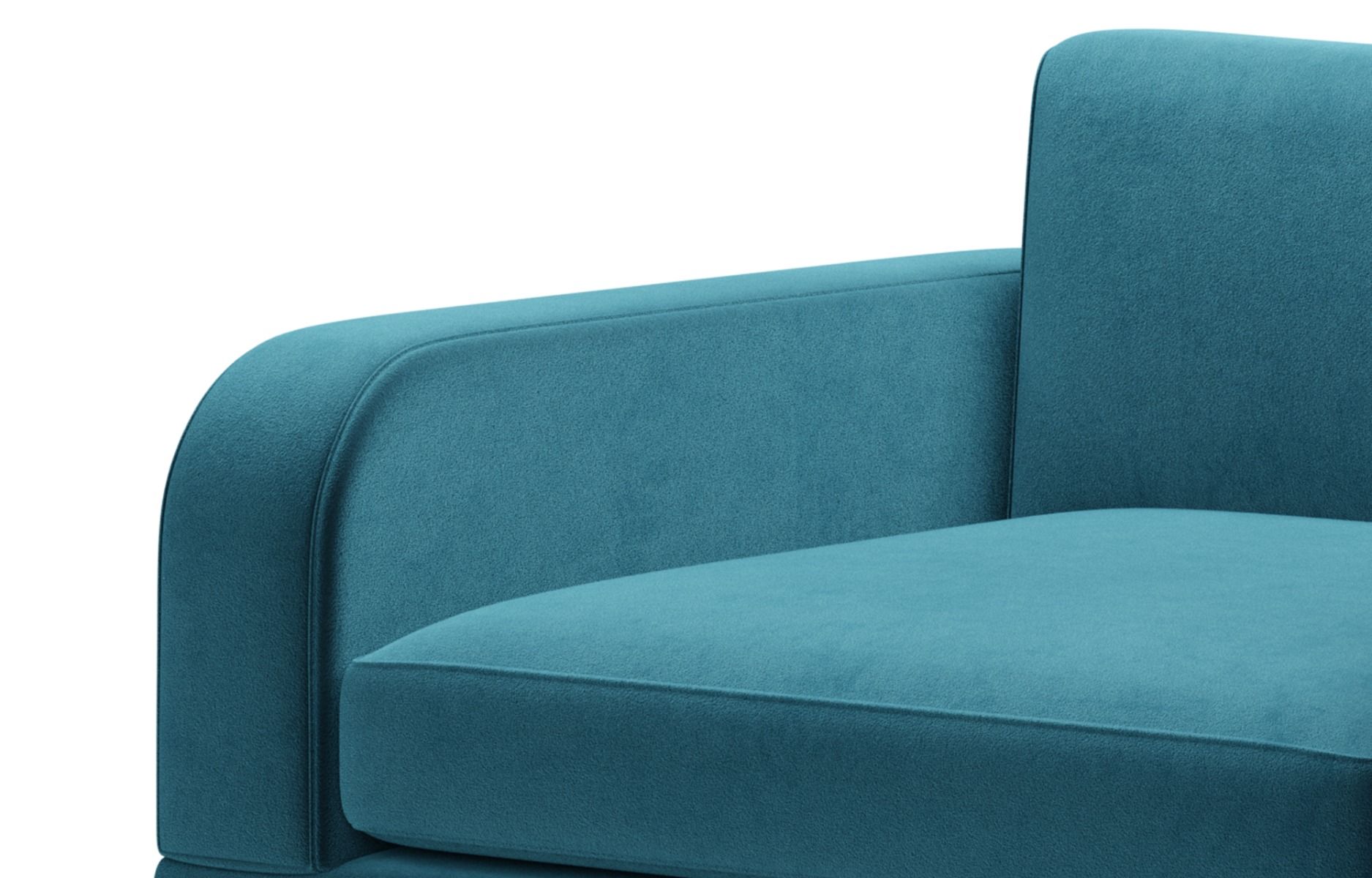 | Finition | Coutures standards soulignant les formes du canapé avec surpiquage sur les pourtours, Velours bleu niagara C22 |