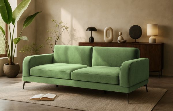 Conçu dans un esprit moderne, ce canapé arbore une allure sobre et élégante qui attire le regard avec son revêtement en velours vert jad. Ce choix de couleur, de plus en plus prisé dans les décors d'intérieur contemporains, apporte une touche d'élégance supplémentaire à votre salon.