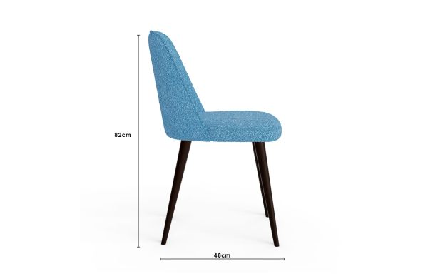 La chaise de salle à manger, ayant l'air chaleureuse et douce, est revêtue d'un joli tissu bouclette en bleu-ciel. L’assise garnie de mousse haute résilience offre un grand confort et le dossier enveloppant fournit le meilleur soutien du corps. Combinez cette merveilleuse pépite avec une de nos magnifiques tables.