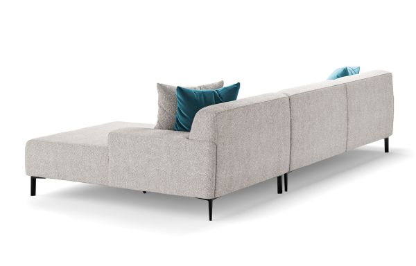 Le salon Bono droit offre une configuration en L, avec une esthétique distinctive grâce à sa méridienne et ses assises inclinées vers l'arrière, toutes rembourrées de mousse haute résilience pour un confort optimal. Son style à la fois minimaliste et élégant lui confère une place naturelle au sein de votre intérieur.