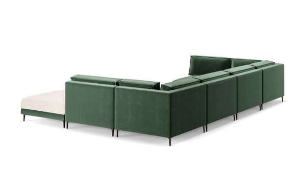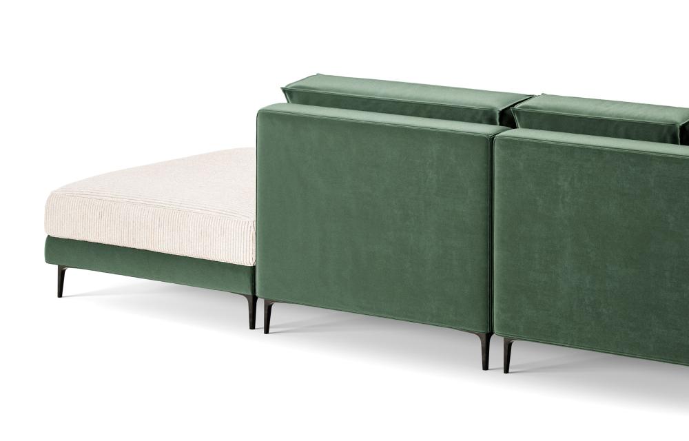 Le salon MAEVA séduit par son design contemporain aux lignes épurées et équilibrées. Sa silhouette basse et structurée apporte une touche de modernité tout en créant une atmosphère apaisante. Habillé d’un tissu vert sauge délicat et naturel, il insuffle une sensation de fraîcheur et de sérénité, idéale pour des intérieurs lumineux et harmonieux.