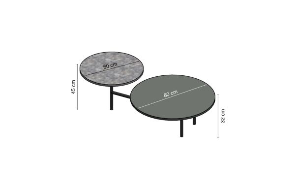 Ces tables rondes se démarquent par leurs deux plateaux distincts : un plateau rond soigneusement fini en shadow black, accompagné d'un plateau rond revêtu de la même finition. Cette combinaison crée un contraste visuel captivant, mettant en exergue l'élégance moderne et sophistiquée de ces pièces. Leur design unique apporte une touche distincte et contemporaine à votre espace, les rendant parfaites pour sublimer votre intérieur.